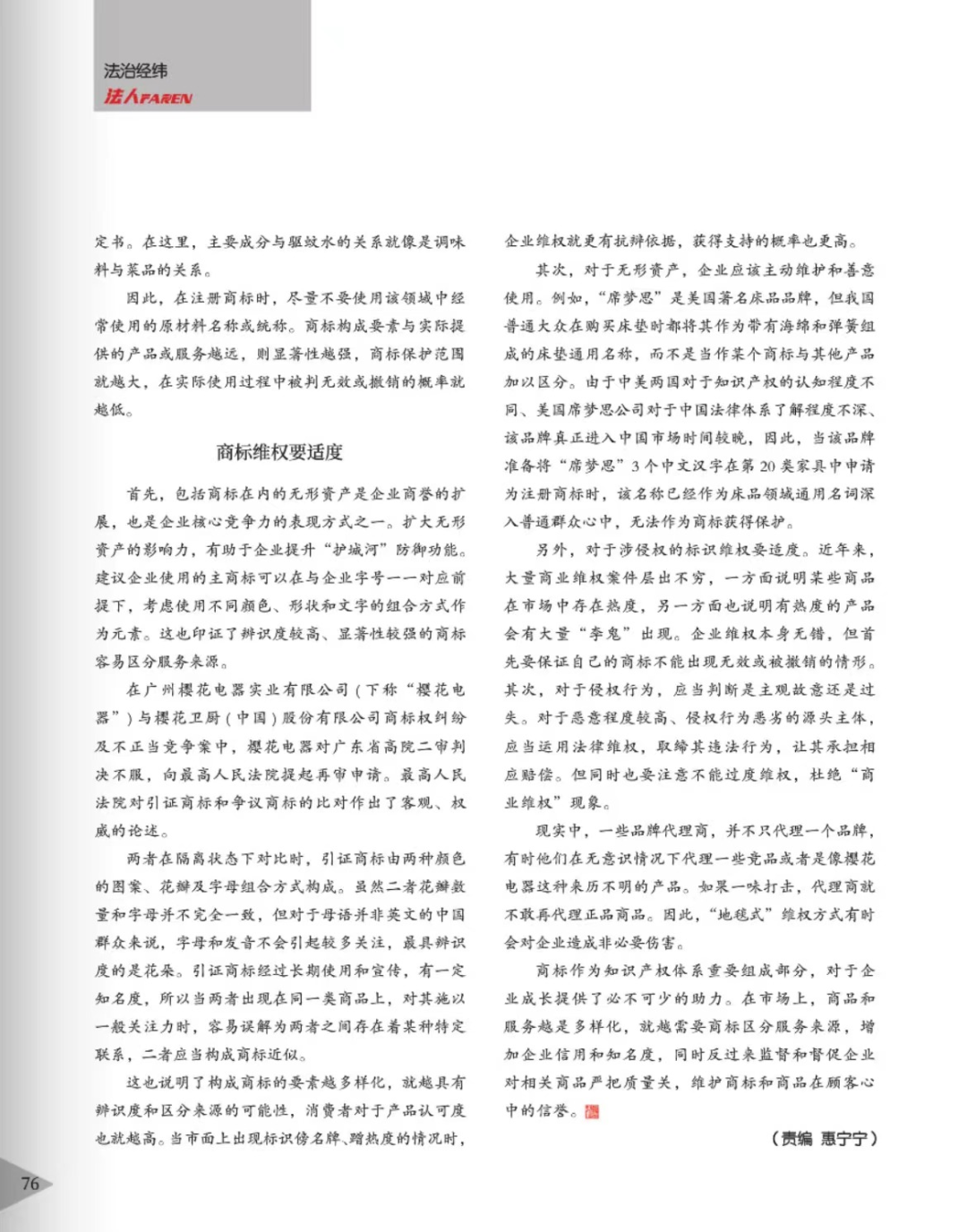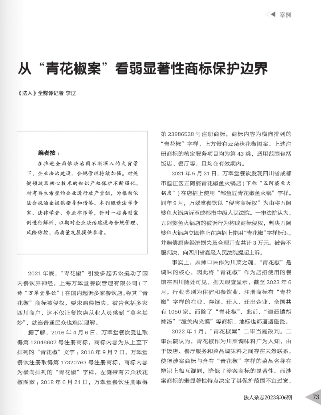 无锡辉知简讯 | 辉知队黄俊益律师应“法治日报”旗下杂志邀请,就“青花椒”案发表专家点评
